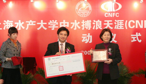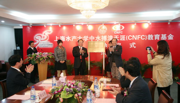 仪式上,中国水产总公司向我校捐赠人民币46万元作为教育基金的启动资金,原农业部副部长张延喜与潘迎捷校长共同为奖学金基金揭牌。中国水产总公司总经理吴湘峰先生与校长潘迎捷共同签署了中国水产总公司与上海水产大学关于成立海水产大学中水搏浪天涯CNFC教育基金的合作协议,校党委副书记、副校长黄晞建介绍了上海水产大学中水搏浪天涯(CNFC)教育基金章程,并代表学校接受捐赠并向中国水产总公司颁发捐赠证书。