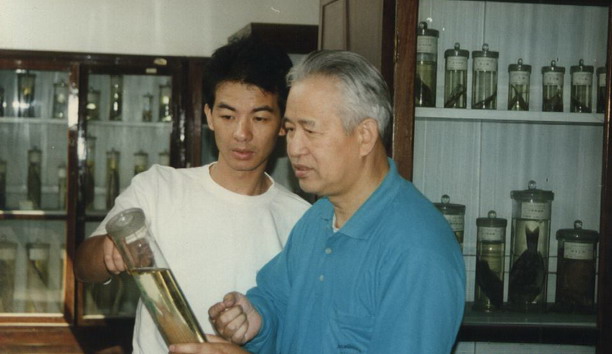 伍汉霖、钟俊生教授开展虾虎鱼类共同研究的早期工作照。