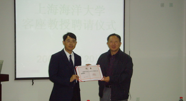 5月20日上午,钱培元教授受聘我校客座教授仪式在水产与生命学院A208会议室隆重举行,校党委书记叶骏向钱培元教授颁发了聘书。聘任仪式上,叶骏书记发表了热情洋溢的讲话,对钱教授受聘我校客座教授表示感谢,对钱教授与我校海洋生物学科教授的合作充满信心,钱教授也就国内外海洋生物学科的发展做了介绍。聘任仪式前,叶书记和钱教授还就学校发展和我校海洋学科的建设进行了亲切会谈和交流。聘任仪式后钱教授为我校海洋生物学科的师生做了精彩的学术报告。