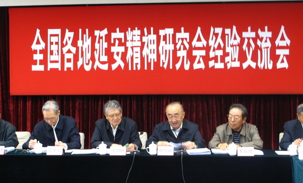 中国延安精神研究会由一批曾在延安战斗、工作过的老同志动议,于1990年5月18日成立,专门从事延安精神的研究和宣传工作。近年来,党中央高度重视和关心中国延安精神研究会工作,李长春、习近平、贺国强、曾庆红、刘云山、李源潮等中央领导同志关于中国延安精神研究会的批示有20余次。二十年来,共发展会员1100余人,开展各类宣讲、纪念会、座谈会200余次,立项课题40余个,出版专著40余部,在重要报刊发表文章1300余篇。