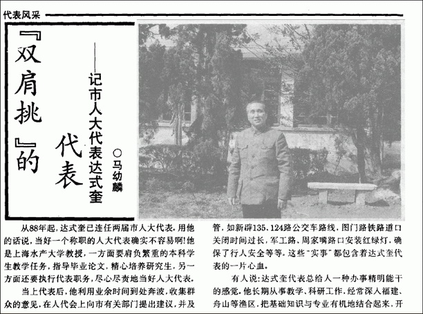 1994年,《上海人大月刊》第六期刊登达老担任人大代表时的事迹