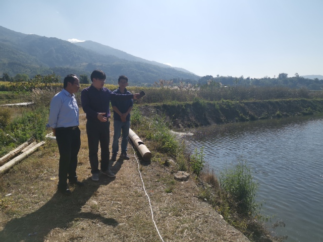 在位于中缅边境线上的云南畹裕农业科技有限公司500亩养殖基地里,黄旭雄代表学校、学院表达了对李玉琳校友的新春祝福和对其长期坚守边境线开展养殖生产、带动边民致富的慰问。他向李玉琳介绍了学院建设和发展的基本情况,详细了解了李玉琳2019年养殖生产情况并现场查看了养殖基地罗非鱼鱼苗生长情况,结合学院在德宏州开展的渔业技术扶贫工作,与李玉琳校友就养殖品种结构调整和技术改进进行了探讨。