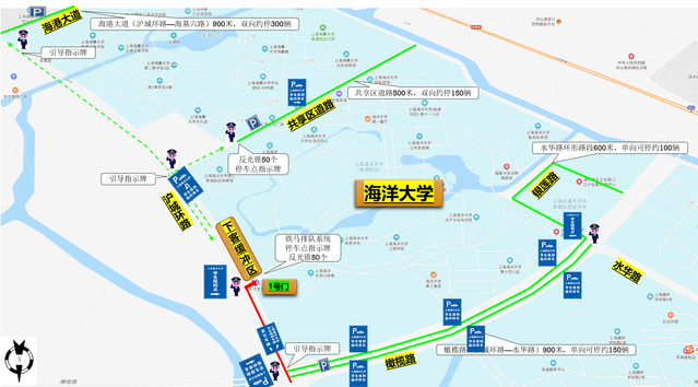 上海海洋大学2020年秋季学期学生返校家长车辆停车示意图