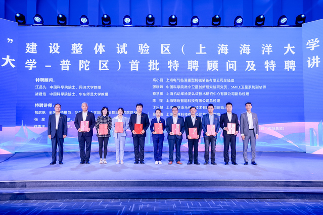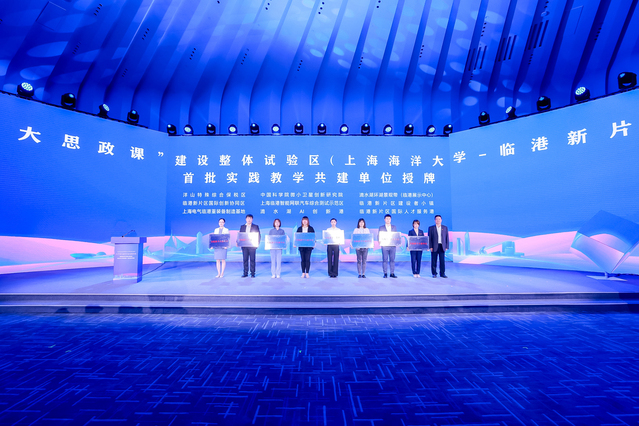 会上,上海海洋大学副校长李家乐为上海“大思政课”建设整体试验区(上海海洋大学-临港新片区)首批实践教学共建单位授牌。共建单位包括洋山特殊综合保税区、临港新片区国际创新协同区、上海电气临港重装备制造基地、中国科学院微小卫星创新研究院、上海临港智能网联汽车综合测试示范区、滴水湖AI创新港、滴水湖环湖景观带(临港展示中心)、临港新片区建设者小镇、临港新片区国际人才服务港。