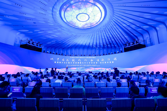 为深入开展学习贯彻习近平新时代中国特色社会主义思想主题教育,落实习近平总书记在党的二十大报告中提出的“推进大中小学思想政治教育一体化建设”的要求,不断拓展“大思政课”建设工作格局,5月21日,中国(上海)自由贸易试验区临港新片区管委会、华东师范大学、上海海洋大学、上海市教师教育学院和上海市学生德育发展中心在临港中心联合开展了“以中国式现代化奋进新征程——临港新片区主题大思政课暨大中小学思政课一体化教学观摩”活动。