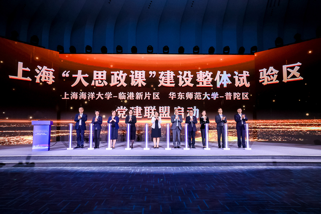 华东师范大学党委书记梅兵,上海海洋大学校长、党委副书记万荣启动了上海“大思政课”建设整体试验区(上海海洋大学-临港新片区)(华东师范大学-普陀区)党建联盟。各党建联盟单位包括南汇新城镇党委、临港新片区综合党委、上海中学东校、明珠临港小学、建平临港小学、中国航海博物馆、中国银行新片区分行、上海外高桥造船海洋工程有限公司。