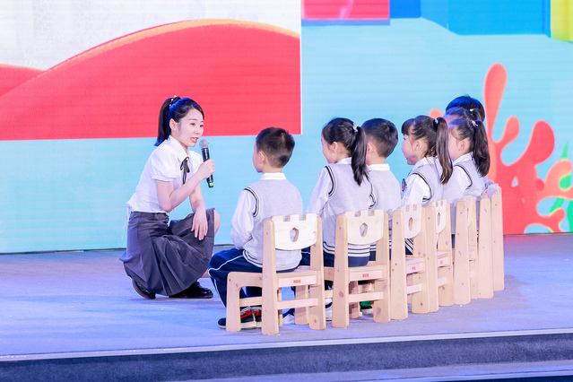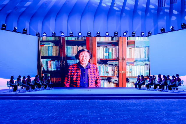 在80分钟的主题教学展示环节中,来自上海大中小幼不同学段的6位思政课教师与中国科学院微小卫星创新研究院的科学家、上海电气集团的劳模,以及大专院校专业课教师同台授课。