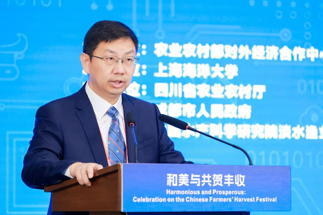 2024年9月20日-23日,由农业农村部对外经济合作中心主办、上海海洋大学承办的“和美与共贺丰收——南南合作与智慧渔业对话”在四川省成都天府农博园成功举行。农业农村部对外经济合作中心主任张陆彪,中国工程院院士、国家农业信息化工程技术研究中心主任赵春江,FAO南南与三方合作司司长叶安平,FAO渔业及水产养殖业司副司长袁新华,成都市人民政府副秘书长张弛,上海海洋大学副校长罗轶,中国水产科学研究院淡水渔业研究中心党委委员朱健等以线上线下方式出席并致辞。来自近20个国家、国际机构,国内相关省市、国内外高校及科研机构、农业企业等相关代表120多人与会。会议由农业农村部对外经济合作中心处长于浩淼主持。