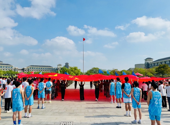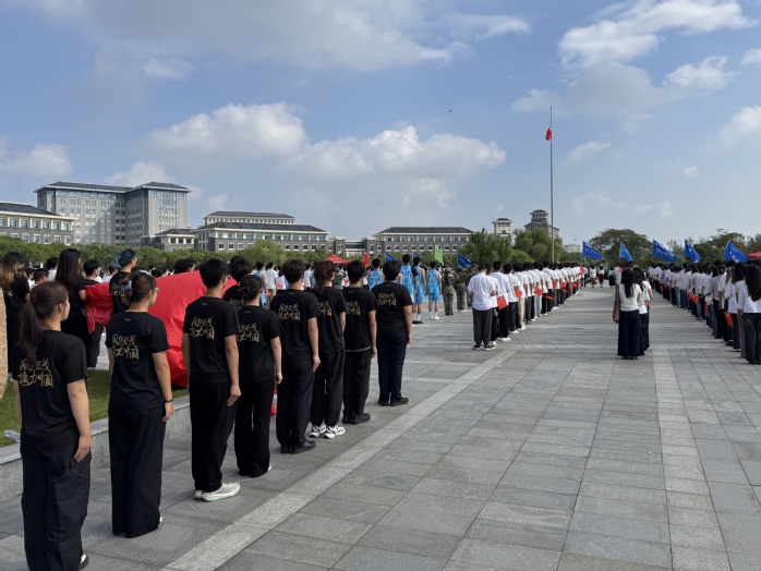 2025年10月1日上午九点,我校庆祝中华人民共和国成立76周年升旗仪式在图文中心国旗广场隆重举行。校党委书记王宏舟与千余名师生代表共同参加。由体育部组织的“体育代表队特色方阵”三十余名学生运动员代表参加了本次升旗仪式,并在仪式中手执巨型国旗缓步入场,将仪式爱国氛围推向高潮。