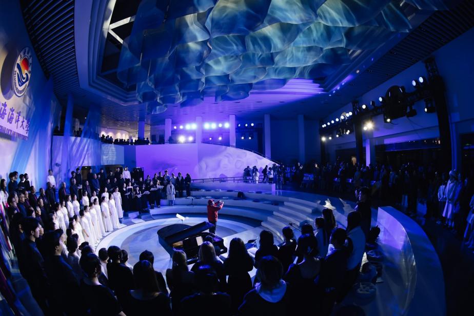 2025年11月25日晚,改造一新的上海海洋大学大学生活动中心·海洋之心迎来建校113周年系列活动“百川归海·声生不息”合唱音乐会。