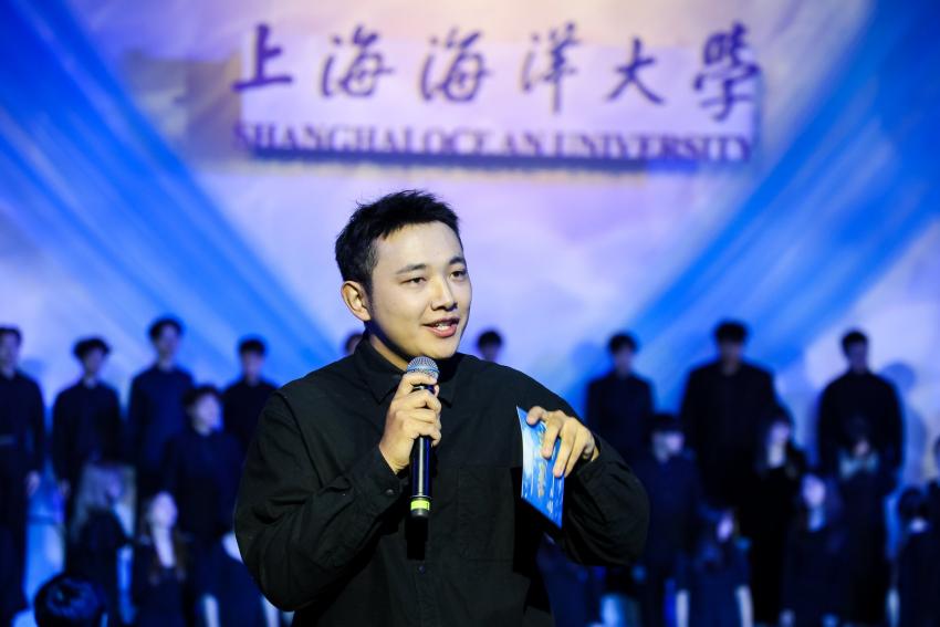 研究生董少斌(学生艺术团总团长、学生合唱团成员)作为学生主持人串讲
