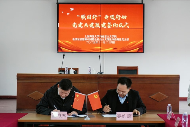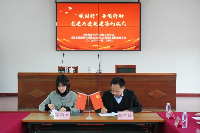为深入贯彻落实党的二十大和二十届四中全会精神,推动校地党建共建工作走深走实,11月24日上午,马克思主义学院毛泽东思想和中国特色社会主义理论体系概论教研室党支部与浦东新区书院镇洋溢村党总支、临港新片区建设者小镇105社区党支部在洋溢村举行党建共建签约仪式,学院党委书记何爱华、洋溢村党总支书记潘石飞、建设者小镇105社区党支部书记祝菁、临港科创中心副总经理饶应福,学校师生代表参加活动。