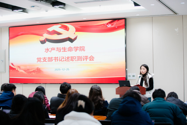 2025年12月25日上午,水产与生命学院2025年度党支部书记年度工作述职评议会在学院楼A101会议室召开。17个师生党支部书记进行现场述职,12个党支部副书记进行书面述职,学院党委委员、党支部书记、专职组织员、党内外代表参加评议,会议由学院党委书记晏萍主持。
