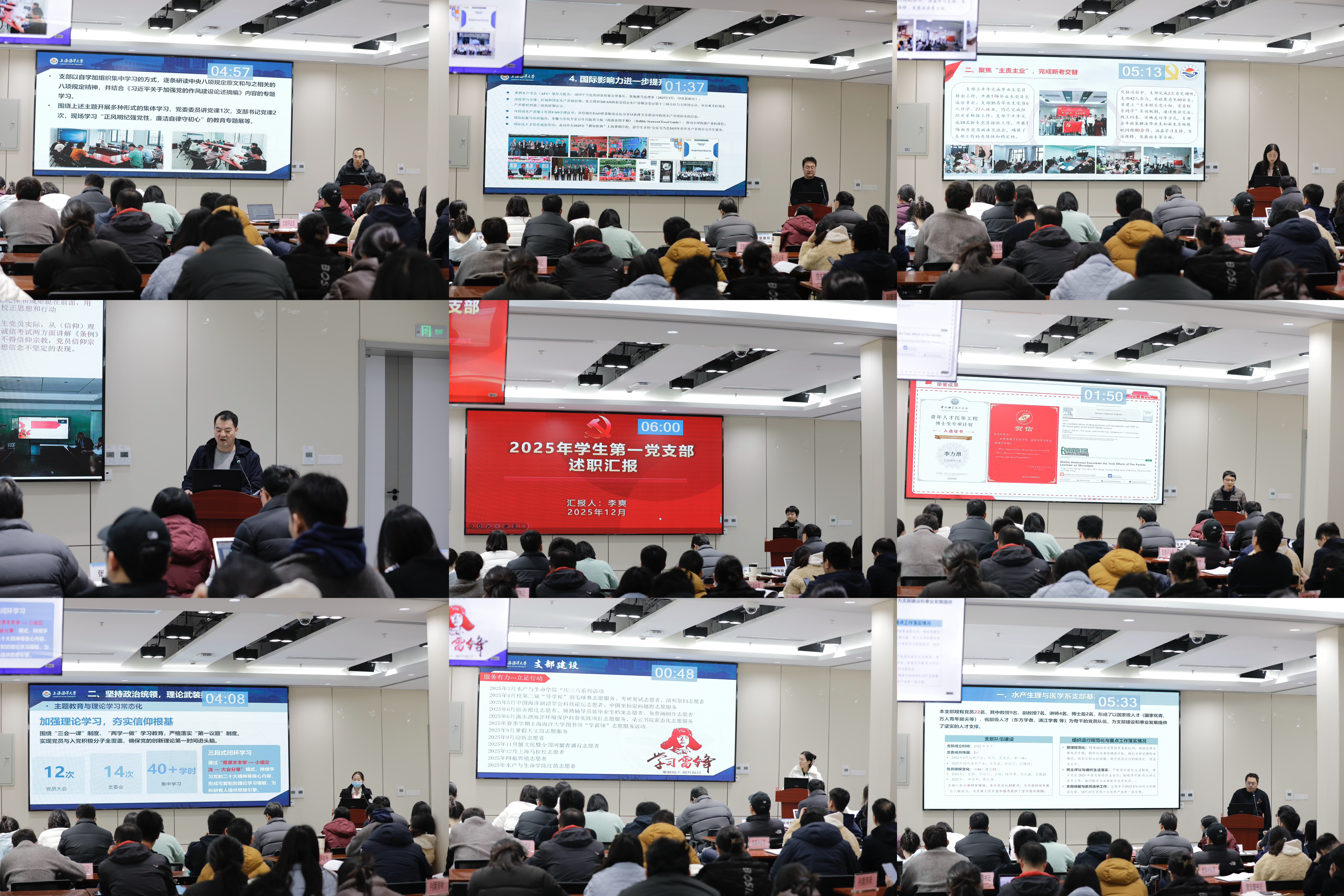 会上,各党支部书记根据教工党支部与学生党支部的建设职责及相关要求,就2025年度支部基本情况、深入贯彻中央八项规定精神学习教育开展情况、“第一议题”与“三会一课”制度落实情况、思想建设推进成效、党员志愿服务开展情况、党建工作创新实践等内容展开详细汇报。汇报中,党支部书记们全面梳理了党支部一年来的工作成效,深入反思并剖析了当前工作存在的短板与不足,同时明确了下一步的工作思路及具体改进举措。