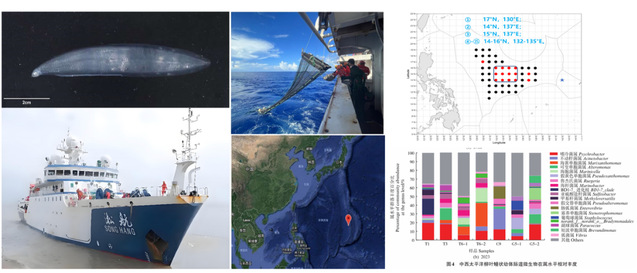 团队依托上海海洋大学“淞航号”科考平台,连续多年沿鳗鲡洄游路线开展深海调查与样品采集,累计获得野生柳叶鳗状幼体样品42尾,并围绕其肠道菌群、天然食物组成等开展研究,为解析鳗鲡仔鱼天然食性及优化人工开口饵料提供了重要基础数据。