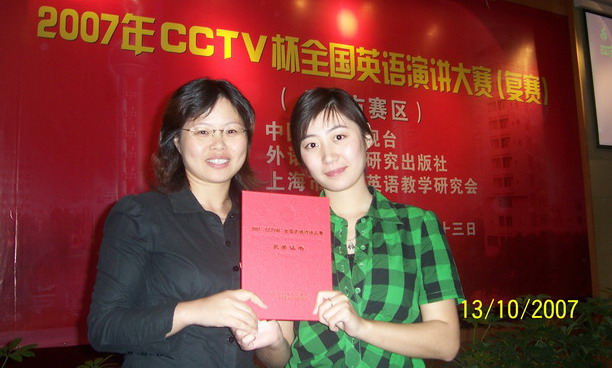 “2007CCTV杯全国大学生英语演讲大赛”上海地区(复赛)于10月13日在上海电机学院落下帷幕。经过激烈的竞争,我校05级市场营销宋美澜同学获得上海地区(复赛)优胜奖。