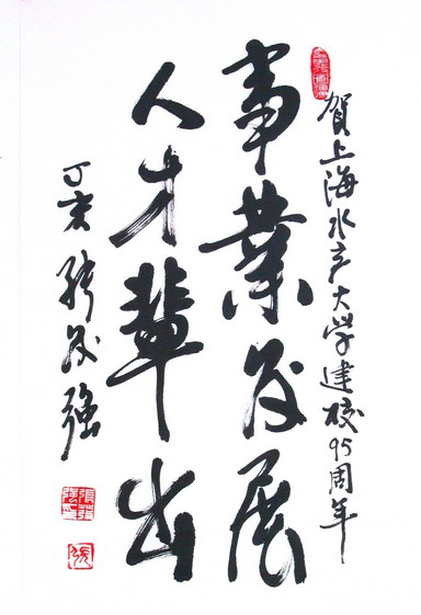 食品加工系水产品加工专业63届校友张发强为我校校庆题词:“事业发展,人才辈出”,热烈祝贺母校建校九十五周年。