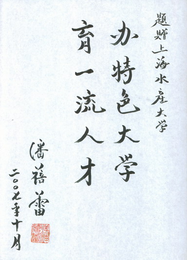 近日,全国政协常委、中国轻工业联合会副会长、中国食品科技学会理事长潘蓓蕾为我校校庆题词:“办特色大学,育一流人才”,祝贺我校建校九十五周年。