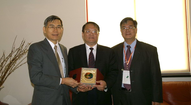 11月2日,上海水产大学校长潘迎捷教授在校会见了前来参加我校九十五周年校庆的台湾海洋大学副校长林三贤教授和高雄海洋科技大学副校长周照仁教授一行,潘校长对他们专程前来参加我校的校庆表示衷心的感谢,双方在学校的发展、师生的交流和项目的合作等方面进行了友好的交流,并愿为进一步推动交流作出积极努力。 陪同前来的台湾海洋大学欧庆贤主任和高雄海洋科技大学俞克维主任一起参加了会见。