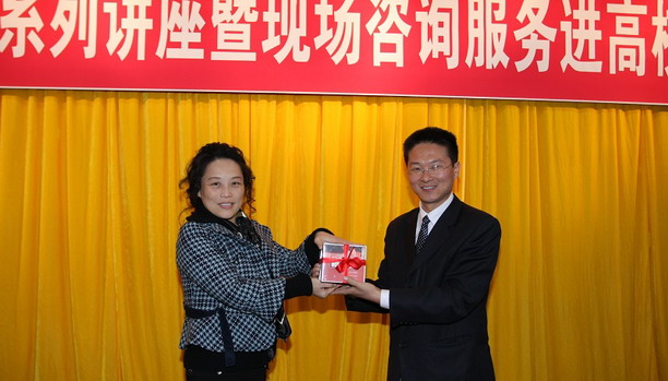 校党委副书记、副校长黄晞建亲临活动现场,为上海市五位开业指导专家颁发了聘书,招毕办副主任朱克勇从上海市社会科学界联合会科普处处长生键红女士手中接过05、06年度“东方讲坛· 开业生涯”系列讲座的DVD。